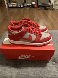The Nike Dunk Low Retro Medium Grey Varsity Red UNLV(2021) released in January of 2021 and Now retailed for $107 in Bgo Sneakers .